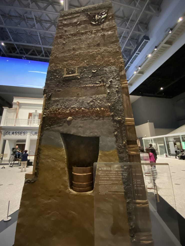 目の前の地層は、東京という都市の「履歴書」そのものだ。 一見すればただの土の重なり。しかし、そこには黒く沈んだ層が幾重にも走っている。明暦の大火、関東大震災、そして東京大空襲。都市を焼き尽くし、あらゆる営みを無に帰した「焼土」の記憶が、地層という沈黙の記録となって、私たちの足元に刻まれている。