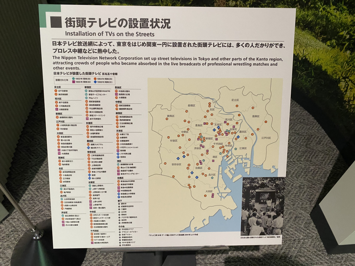 日本テレビ放送網によって、東京をはじめ関東一円に設置されたテレビの周りには、プロレス中継などに熱中する膨大な人だかりができた。