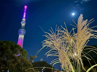 月とスカイツリーとススキの競演