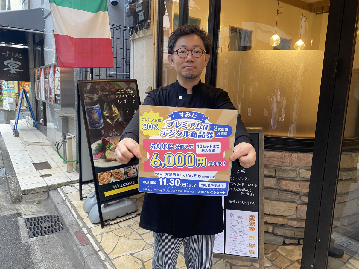 墨田区商店街連合が現在、会墨田区内の飲食店などの決済時にPayPayで使える「すみだプレミアム付デジタル商品券」の第2次販売を行っている。