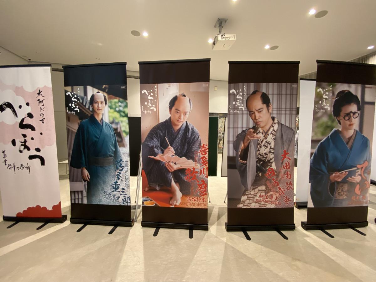 すみだ北斎美術館(墨田区亀沢2)のMARUGEN100(講座室)で、NHK大河ドラマ「べらぼう~蔦重栄華乃夢噺~」の関連パネル展が行われている。