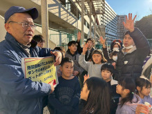 餅つきや合唱などを楽しむ地域交流イベント「てらたま・たもんじ納会」が12月28日、たもんじ交流農園(墨田区墨田2)で行われた。