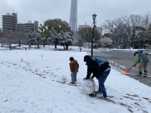 降雪の影響で、墨田区内では積雪が観測され、隅田公園(墨田区向島1)一帯が雪景色に包まれた。