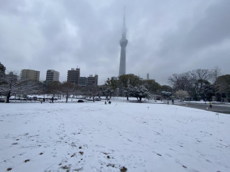 降雪の影響で、墨田区内では積雪が観測され、隅田公園(墨田区向島1)一帯が雪景色に包まれた。