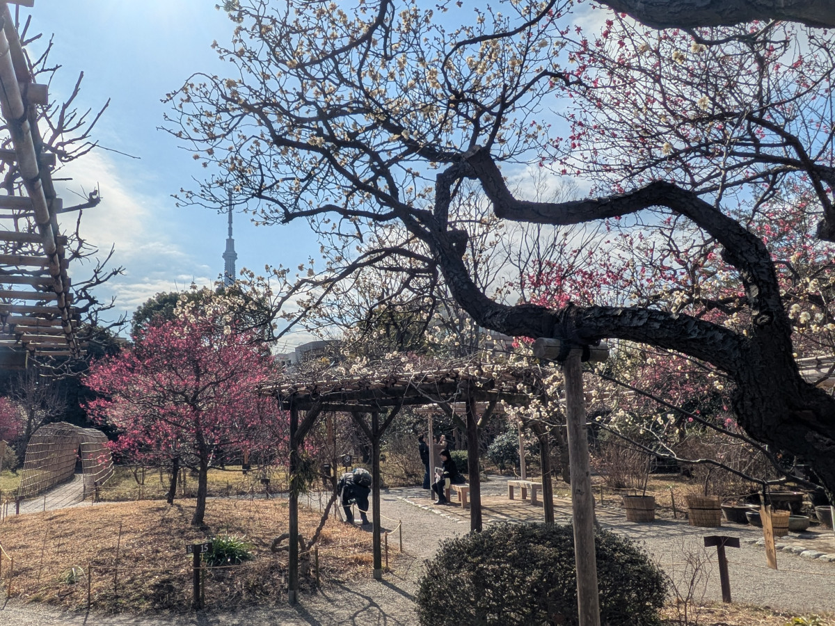 まもなく見ごろを迎える向島百花園の梅の花
