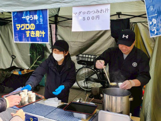 ドリンクを飲み比べて投票するイベント「第2回 ドリンクNo.1グランプリ(ドリワンGP)」が2月14日、タワービュー通り(墨田区太平1・2)で開かれ、そば店・一ゆう縁が提供した「マグロのすき身汁」主催はタワービュー通り商店街。