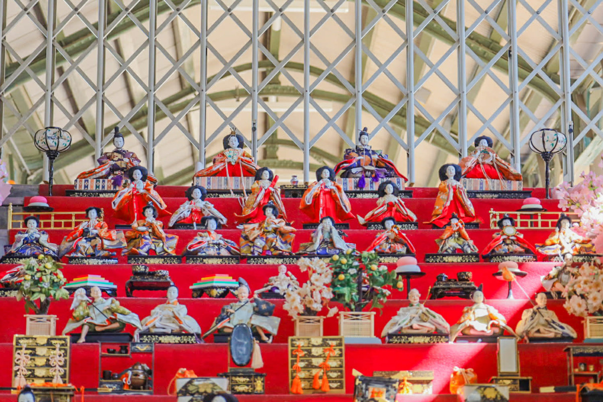 ひな人形展示の奥は3番線ホーム