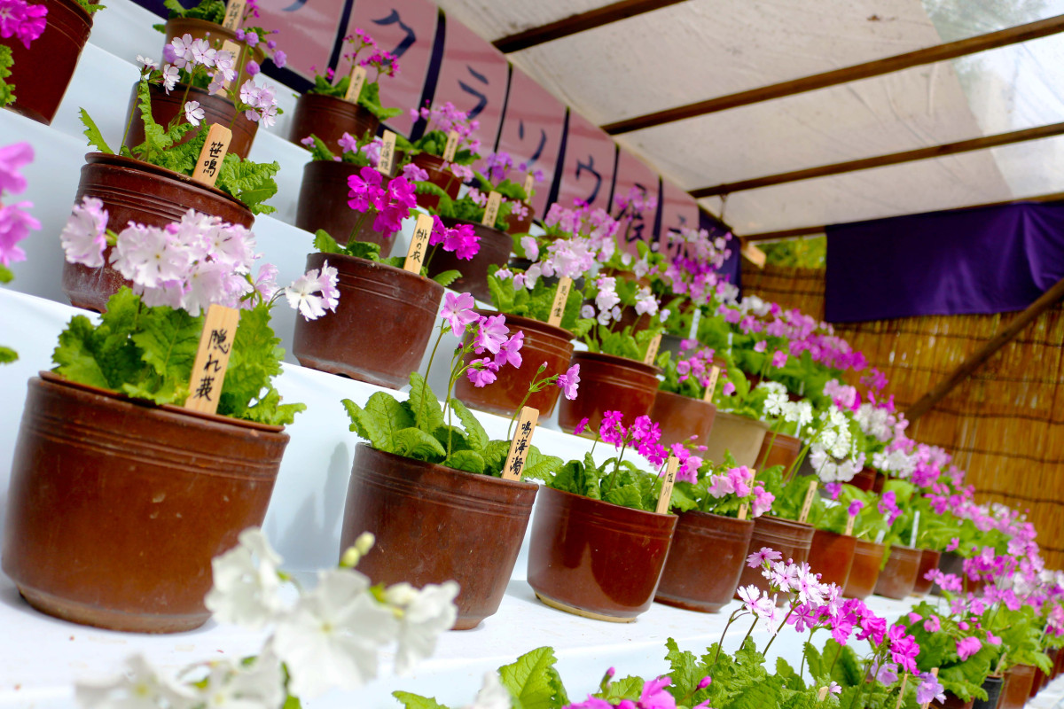 約60種類のサクラソウを展示している