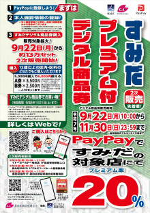 「すみだプレミアム付デジタル商品券」の第2次販売は11月30日まで