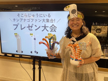 参加者は、ダイビングでのチンアナゴとの出合いや国内の水族館巡りのエピソードを発表したほか、希少行動を捉えた動画、編みぐるみなどのオリジナルグッズ、オリジナルソングなどが紹介された。チンアナゴの水槽前で結婚式を挙げたというエピソードも披露され、会場には驚きや笑顔が広がった。イベント後には、参加者が指でチンアナゴポーズを取って記念撮影に臨んだ。