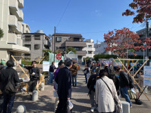 見学会は、同日開催された「押上北口駅まえ活用実験」の一環。中之郷児童遊園には飲食店の出店や、墨田区の伝統野菜「寺島なす」を紹介するブースが並び、地域住民でにぎわった。見学会は周辺住民を対象に行われ、午前・午後の2回に分けて各回14人が参加した。