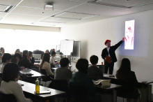 講師はBSよしもとから派遣され、映像制作の実務経験を基にした具体的なアドバイスを行った。当日は、各部署から集まった参加者が制作したPR動画や案内動画を上映し、動画を見ながら講師がチェックする流れで進行。導入部分の工夫、テロップの出し方、画面構成などについて、その場で改善点を共有した。