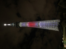 三が日に合わせて行う特別演出で、17時45分から24時までは、日の丸をイメージした赤と白のライティングを点灯。塔体中央を赤く灯し、その上下を白い光で包み込む構成で、日本国旗を想起させるデザインとした。写真を撮ろうと足を止める人や、見上げながら年明けの雰囲気を楽しむ家族連れの姿も見られた。
