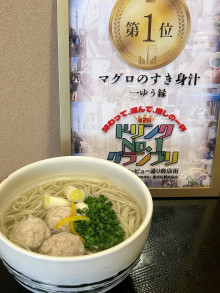 ドリンクを飲み比べて投票するイベント「ドリンクNo.1グランプリ」で優勝したそば店「一ゆう縁」(墨田区太平4)が2月17日、優勝を記念したメニューとして、「マグロのつみれそば」(1,480円)の提供を始めた。