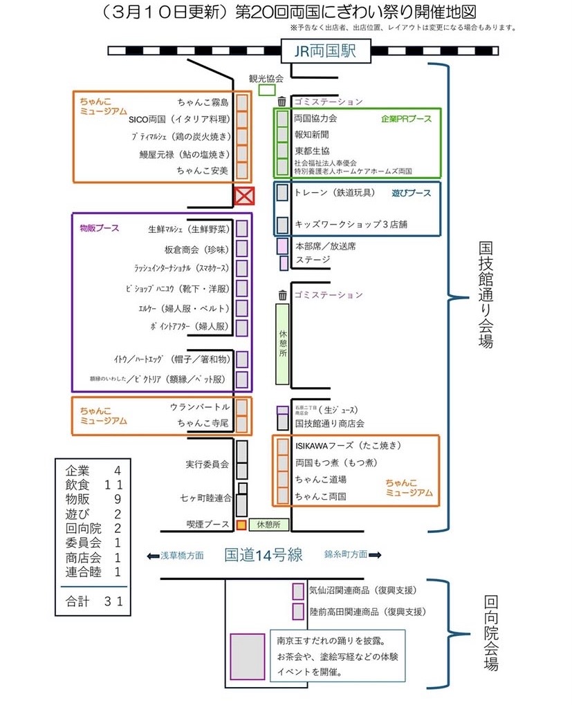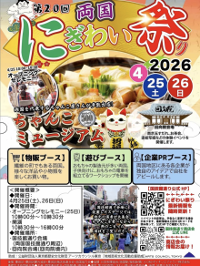 「第20回両国にぎわい祭り」が4月25日・26日、国技館通り会場(墨田区両国2周辺)と回向院会場で開かれる。主催は両国連合町会と国技館通り商店会。