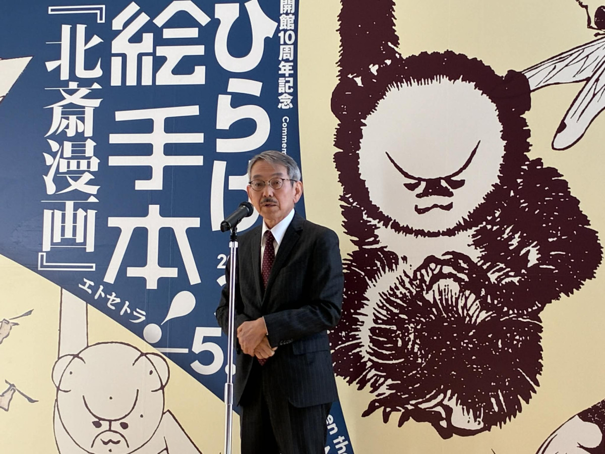企画展の開会式であいさつする大久保淳一館長
