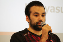 パリ・サン=ジェルマンとジークスター東京の両チームに所属したことがあり、今回のイベントアンバサダーをつとめる元フランス代表リュック・アバロさん(撮影=大塚淳史)