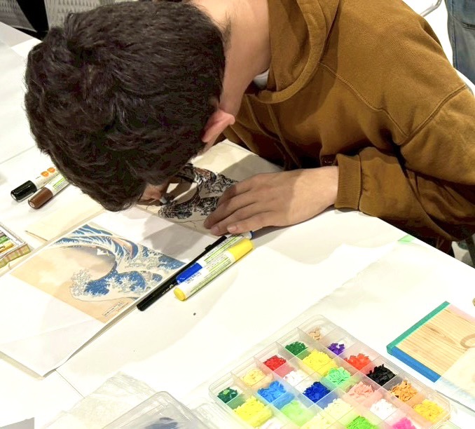 すみだ北斎美術館(墨田区亀沢2)MARUGEN100(講座室)で10月12日、「つながる北斎×和文化交流ワークショップ」が開かれた。
