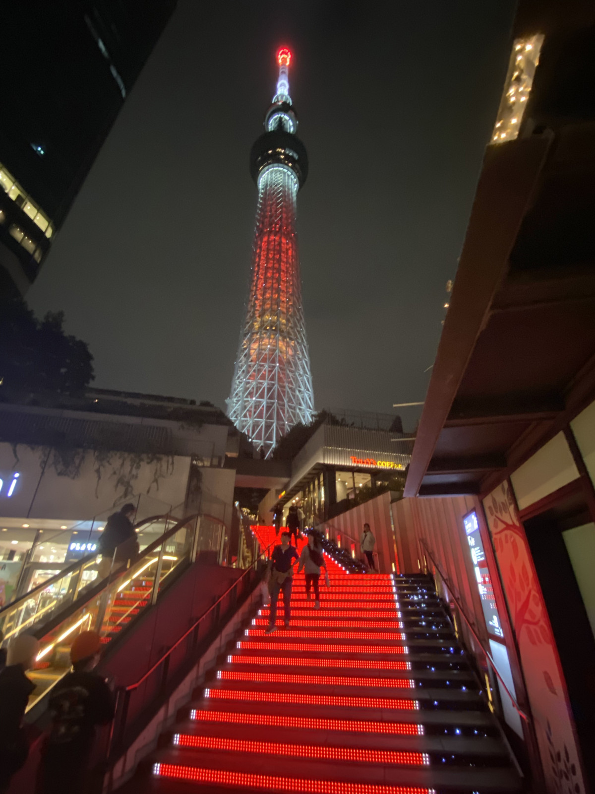 レッドカーペットをイメージしてライトアップされたソラミ坂