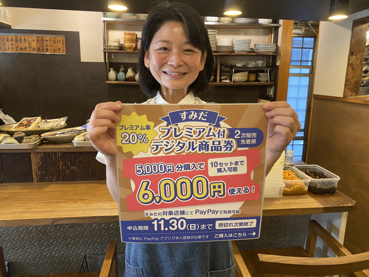 墨田区商店街連合が現在、墨田区内の飲食店などの決済時にPayPayで使える「すみだプレミアム付デジタル商品券」の第2次販売を行っている。