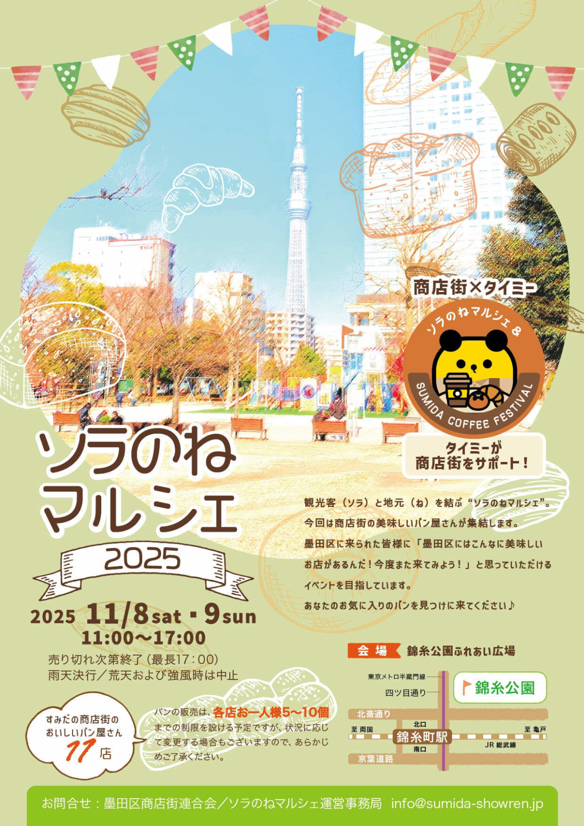 パンやスイーツの販売を中心とした屋外イベント「ソラのねマルシェ2025」が11月8日・9日、錦糸公園(墨田区錦糸4)で開かれる。