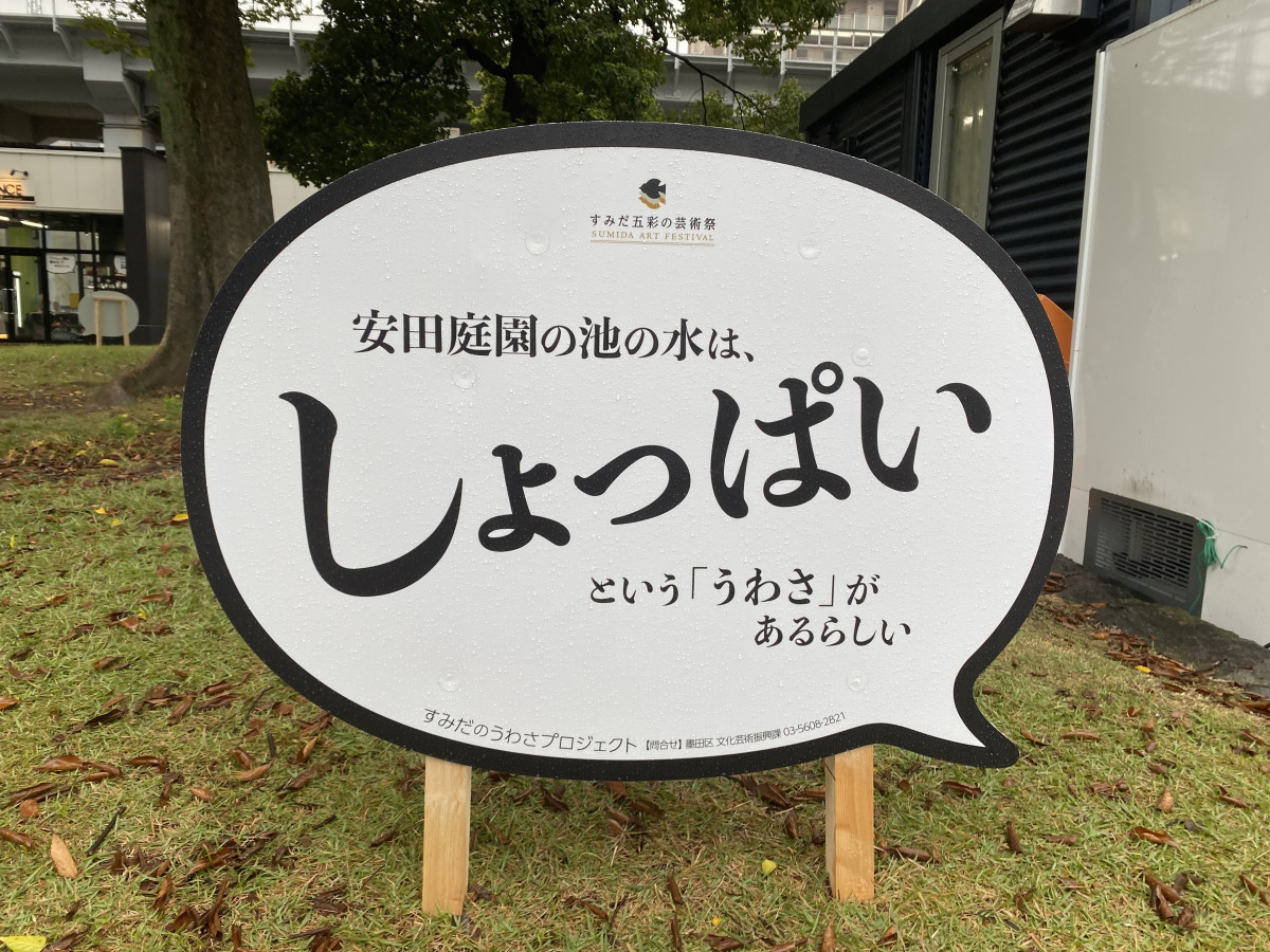「安田庭園の池の水は、しょっぱいという『うわさ』があるらしい」のうわさ