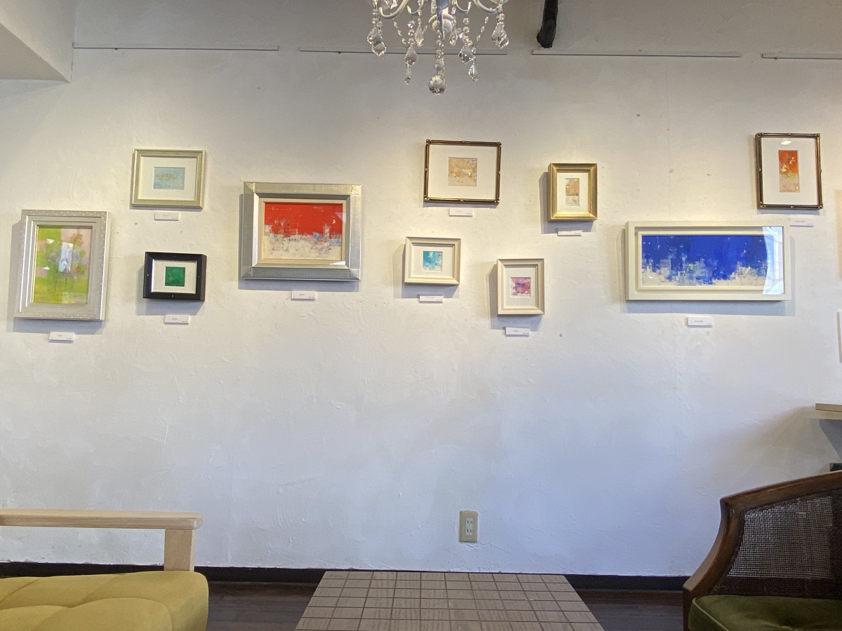 鈴木節子さんの個展「それぞれの窓」展示風景。青や赤、緑など多彩な色彩が並ぶ