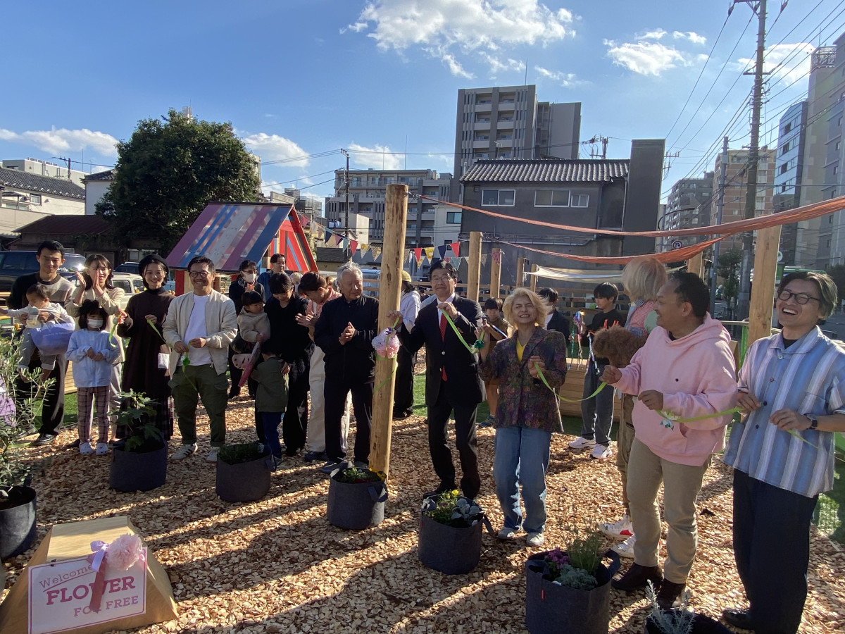 私有地を活用して整備した、子育て世代が気軽に過ごせる広場「たてよんひろば(by ネウボーノ)」(墨田区立川4)のオープニングイベントが11月15日、同広場で行われた。