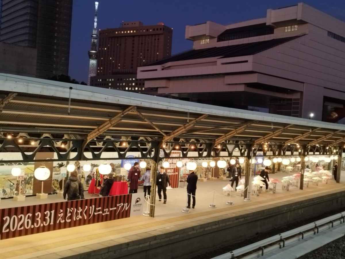 「江戸博リニューアル100日前イベント」が行われている両国駅3番線ホームと江戸東京博物館