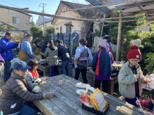 餅つきや合唱などを楽しむ地域交流イベント「てらたま・たもんじ納会」が12月28日、たもんじ交流農園(墨田区墨田2)で行われた。