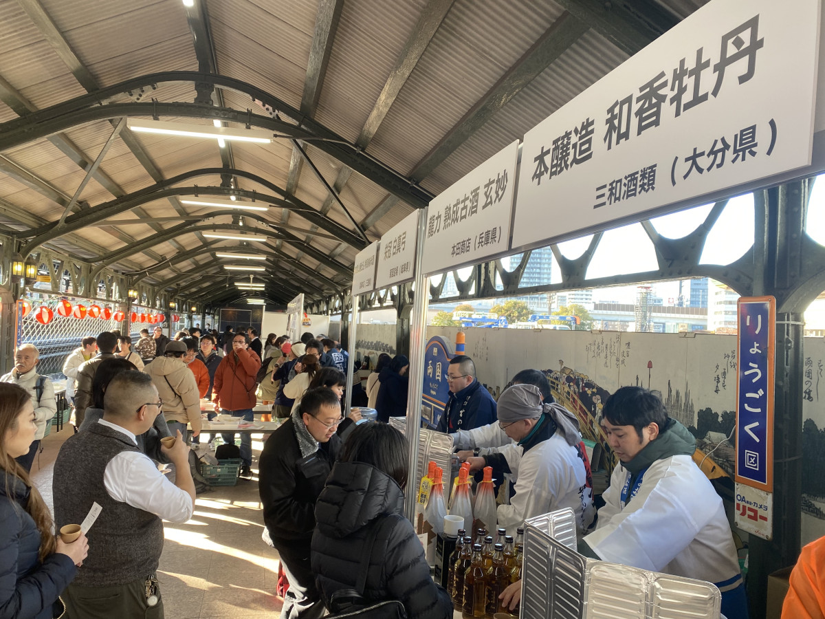 両国駅3番線ホームで行われる「おでんで熱燗ステーション」。今年は1月29日~2月1日に開催。