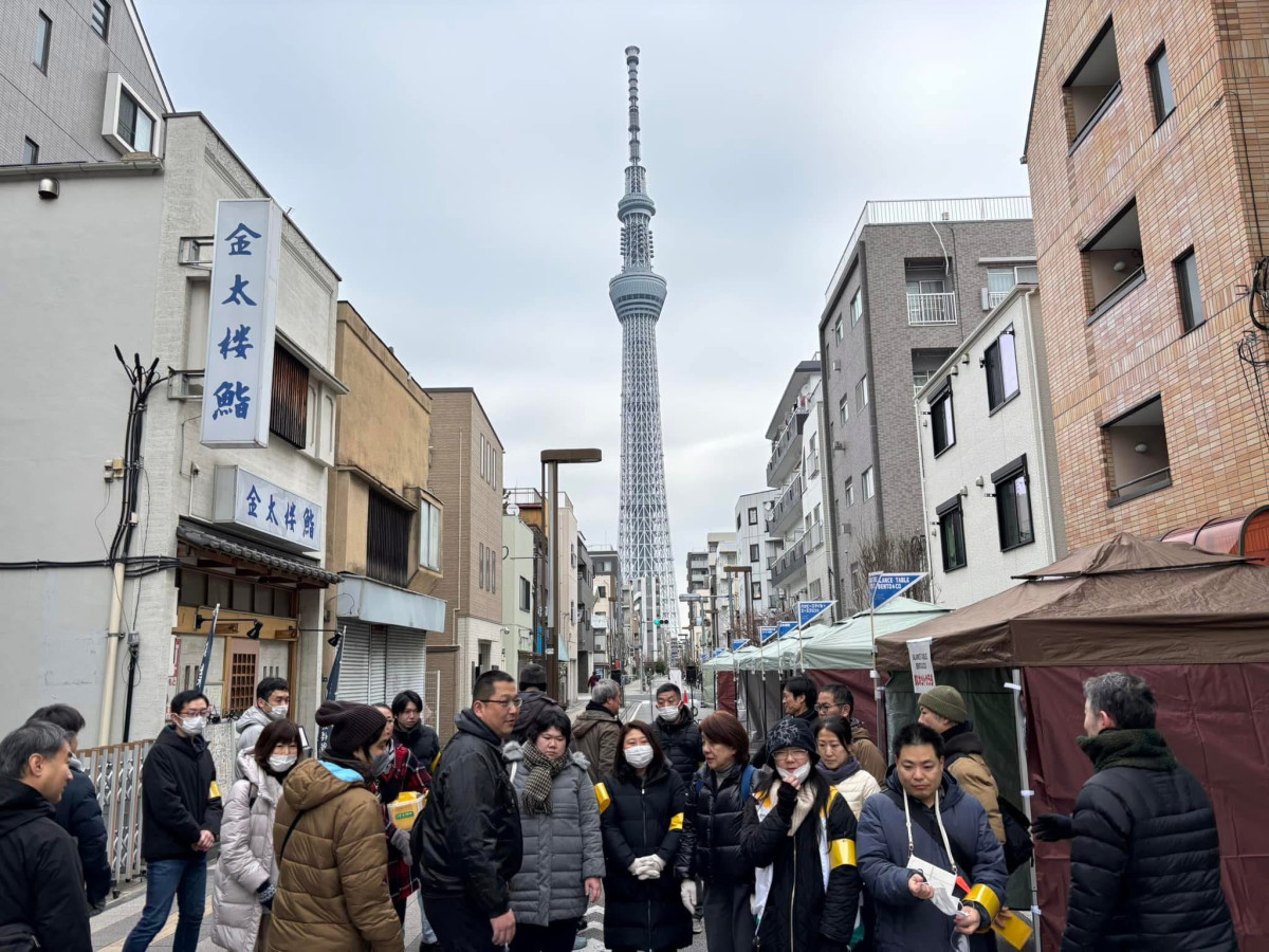 隣接する地区にあるタワービュー通り商店街(墨田区太平1・2)と太平町商店会(同太平3・4)が2月20日、地域防災力の強化を目的とした連携を開始した。