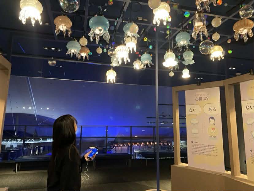パネル展示ブースには7種26個のクラゲ型ランプも