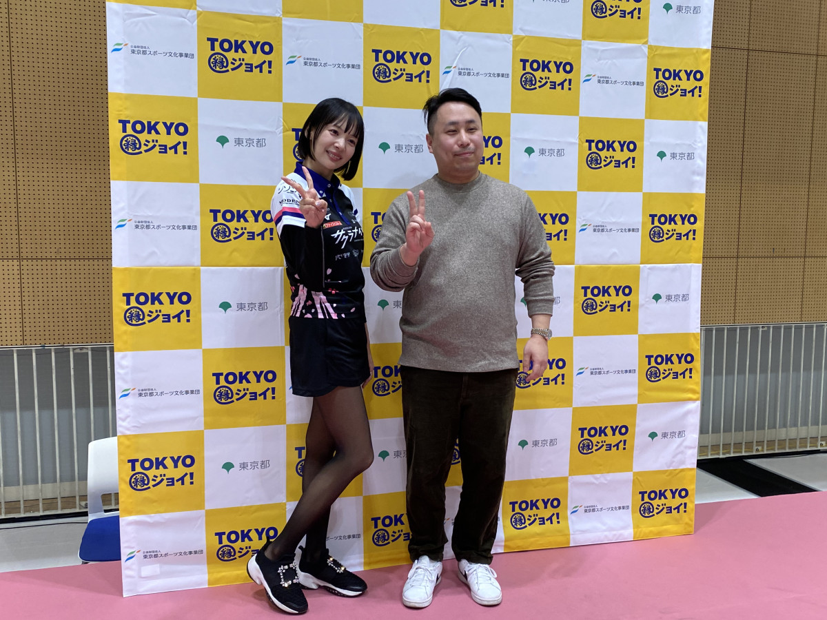 記念撮影に応じる岡田紗佳選手