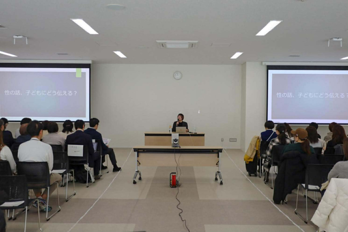 助産師で性教育ユーチューバーのシオリーヌさんを招いた講演会「おうちでいつやるどうやる?いま、必要な性教育を考える」が1月25日、「すみだ保健子育て総合センター(愛称すみほこ)」(墨田区横川5)で行われ、約80人が参加した。