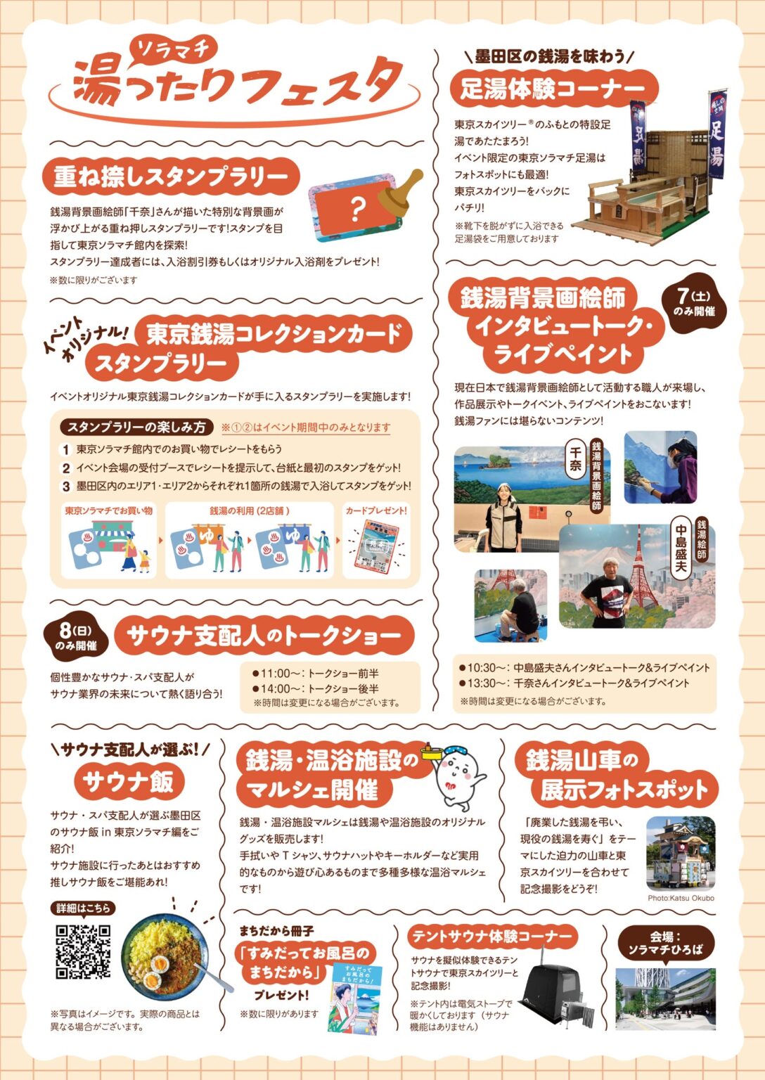 墨田区内の銭湯やサウナ文化を体感できる「ソラマチ湯ったりフェスタ」(チラシの裏面)