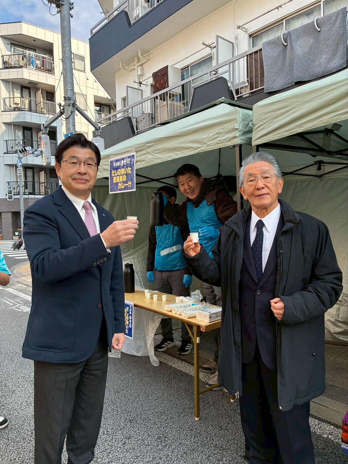 ドリンクを飲み比べて投票するイベント「第2回 ドリンクNo.1グランプリ(ドリワンGP)」が2月14日、タワービュー通り(墨田区太平1・2)で開かれ、そば店・一ゆう縁が提供した「マグロのすき身汁」主催はタワービュー通り商店街。