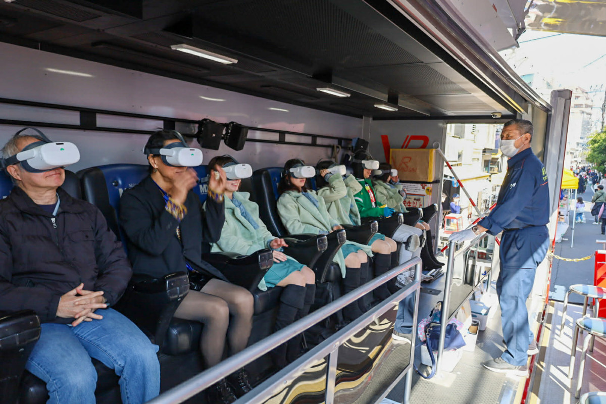 同時にVR体験できる東京消防庁の「VR防災体験車」