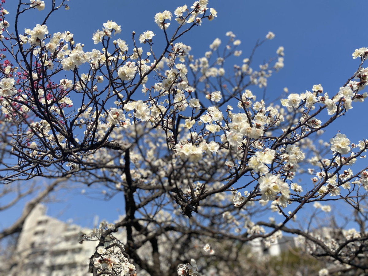 向島百花園(墨田区東向島3)の梅が見頃を迎え、園内は紅梅や白梅を楽しむ来園者でにぎわっている。