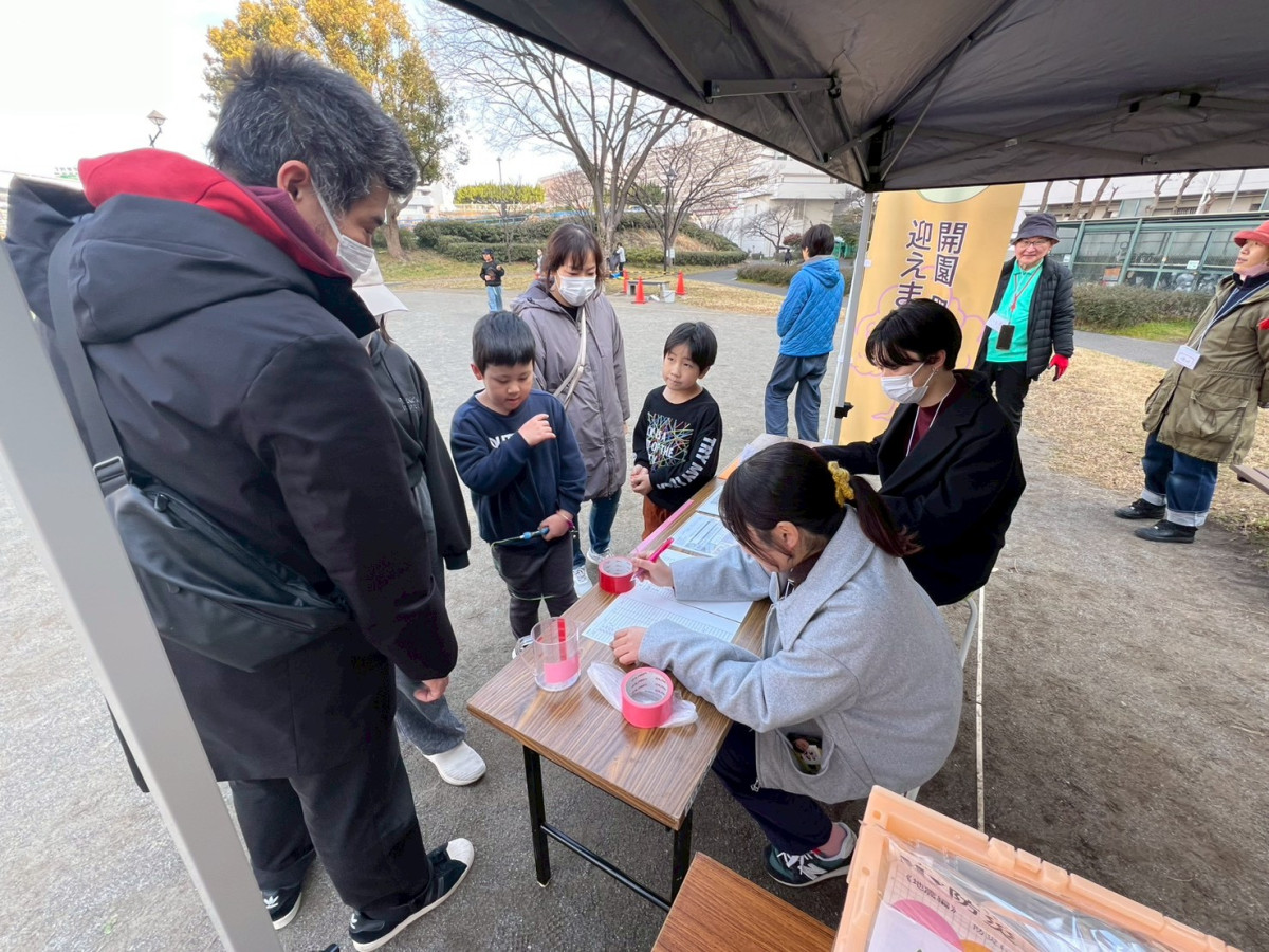 親子で遊びながら防災を学ぶ体験イベント「あそ防災」が2月22日、都立東白鬚公園(墨田区堤通2)の多目的広場で開催された。