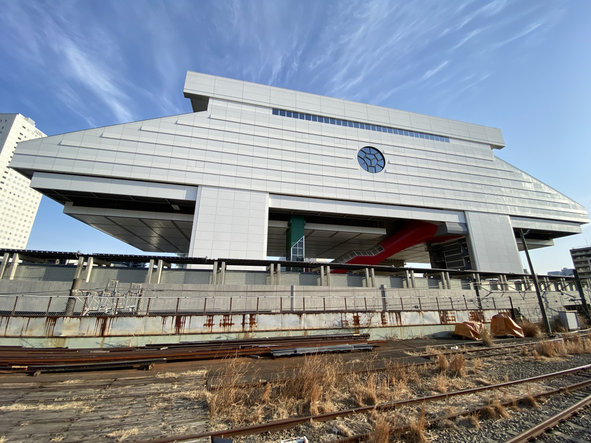 両国駅3番線ホームからみた江戸東京博物館