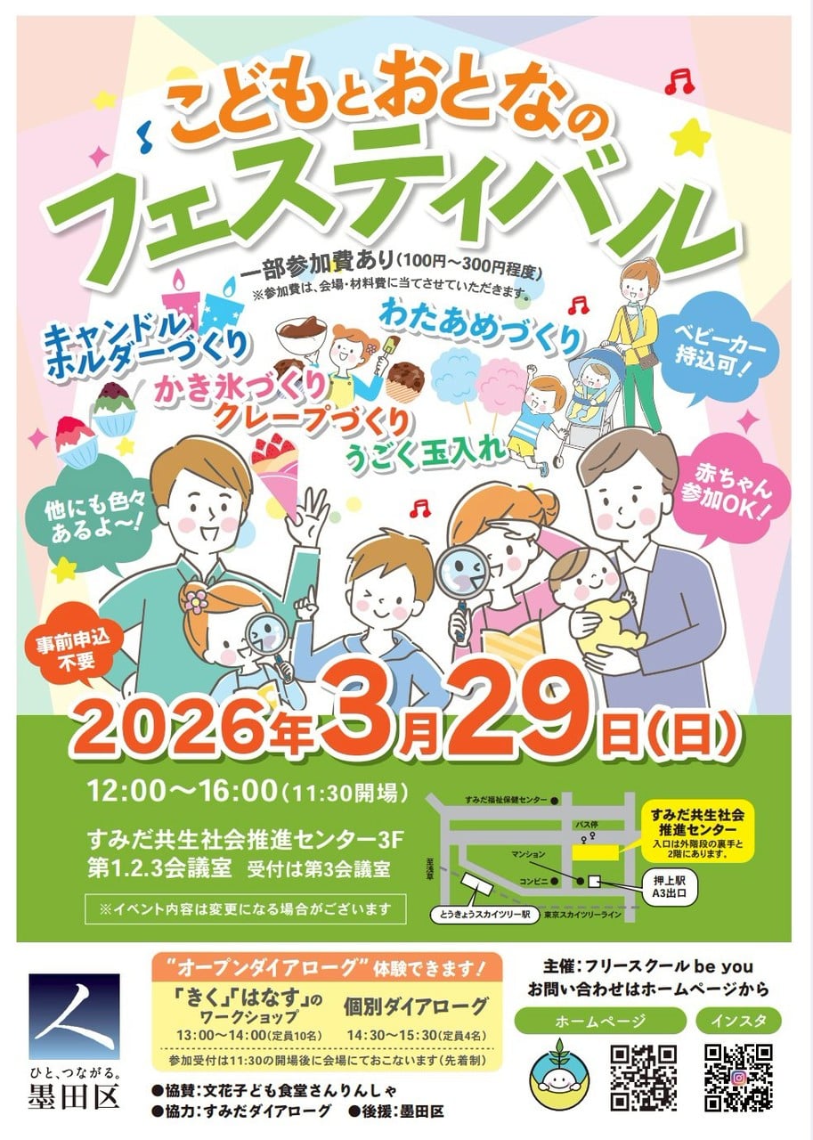 イベント「こどもとおとなのフェスティバル」が3月29日、すみだ共生社会推進センター(墨田区押上2)で開催される。