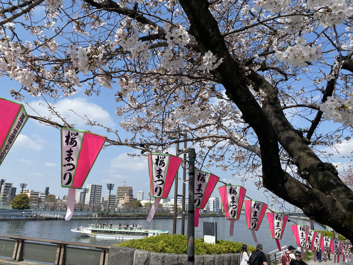 隅田川沿いの墨堤のソメイヨシノが見頃を迎えた3月28日、隅田公園(墨田区向島1)周辺では多くの花見客でにぎわいを見せた。