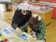 銭湯背景画を描くワークショップが3月28日、すみだ生涯学習センター「ユートリヤ」(墨田区東向島2)で開かれた。