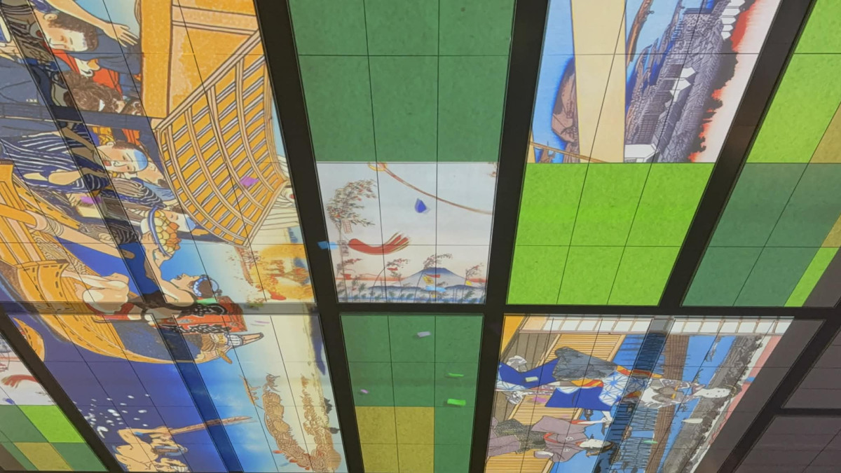 天井を使った映像演出も